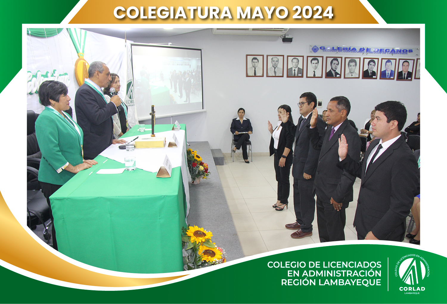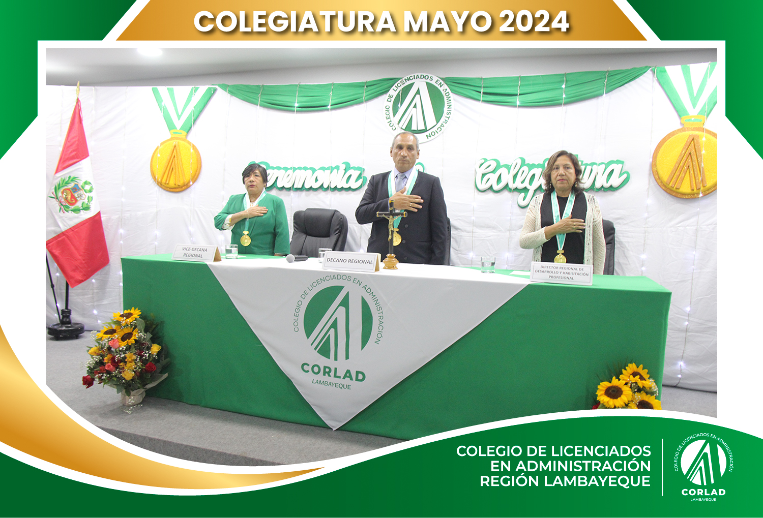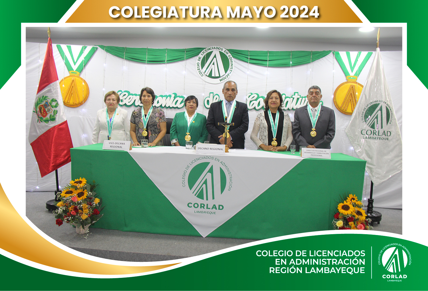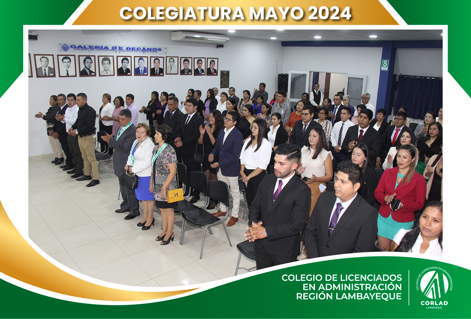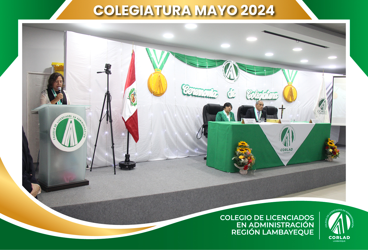 La Ceremonia de Colegiatura Mayo 2024 del Colegio de Licenciados en Administración Región Tacna tuvo lugar el pasado sábado 4 de mayo de 2024 en el Colegio de Contadores, ubicado en la Calle Los Rosales N° 196 – Urb. Santa Victoria.