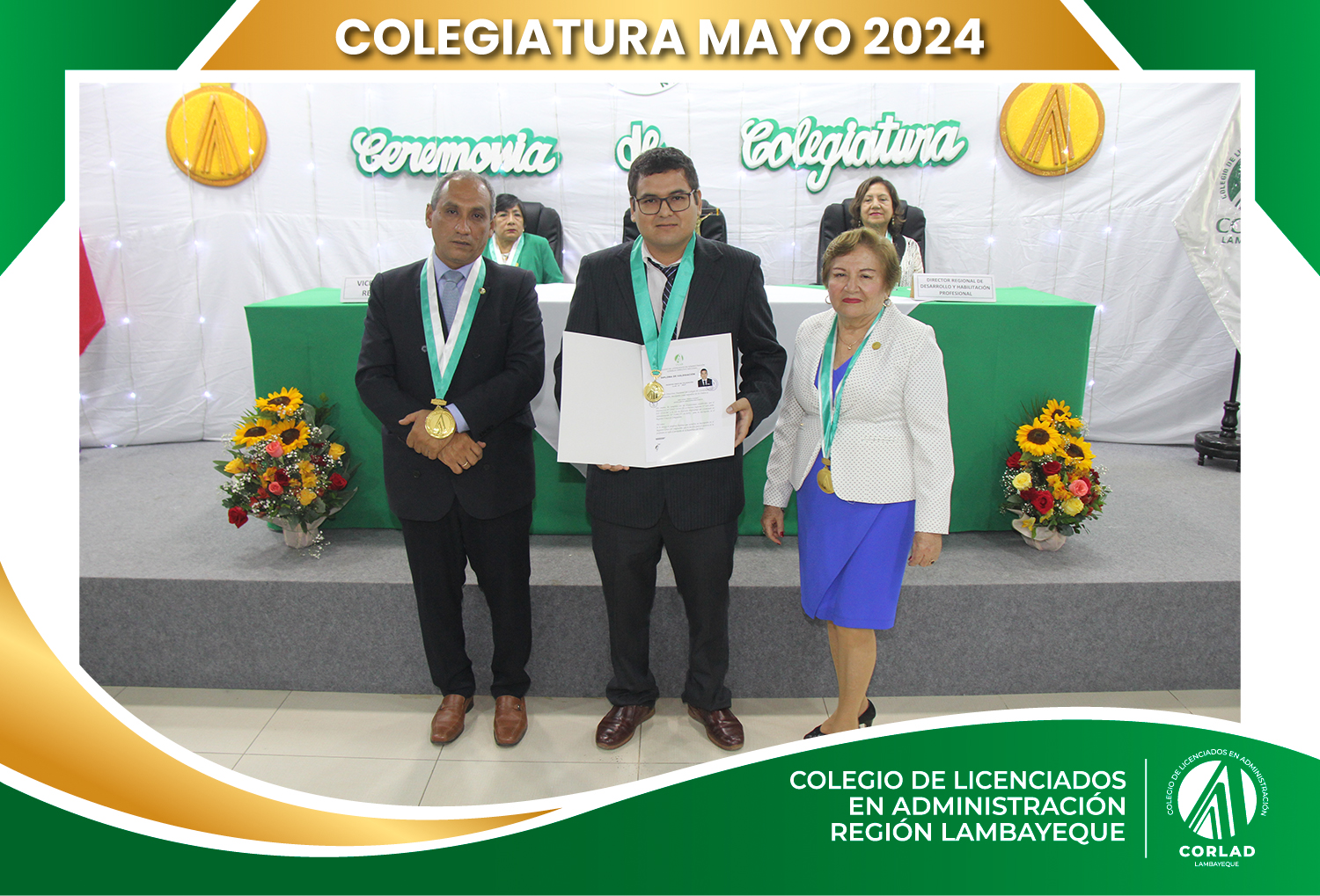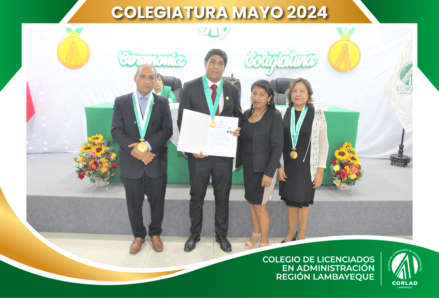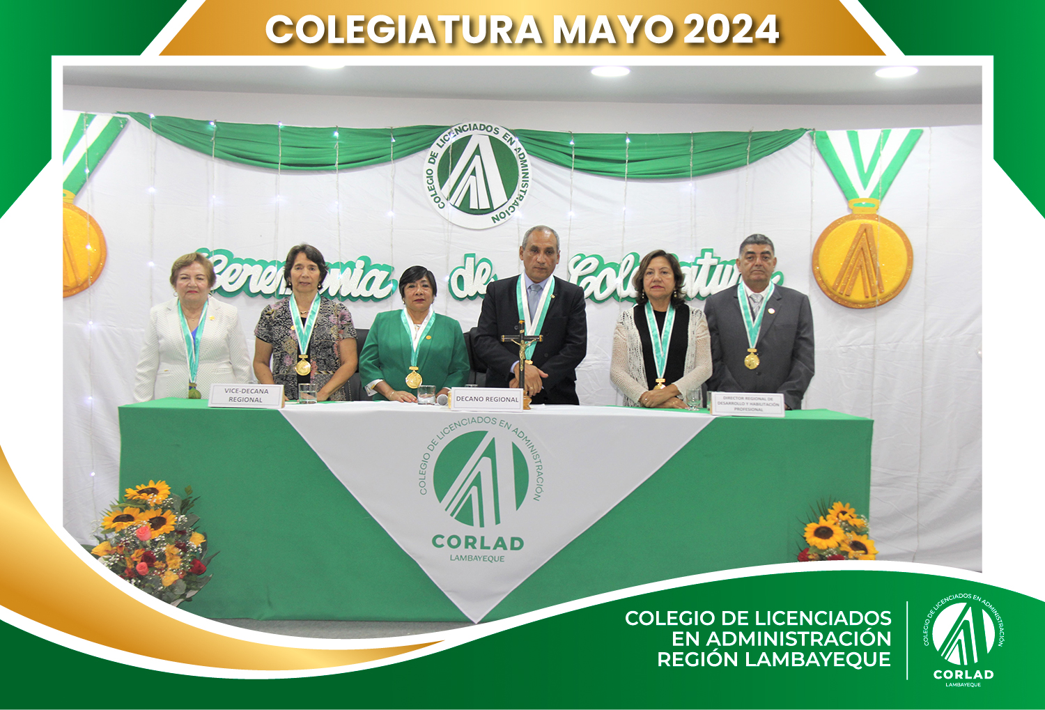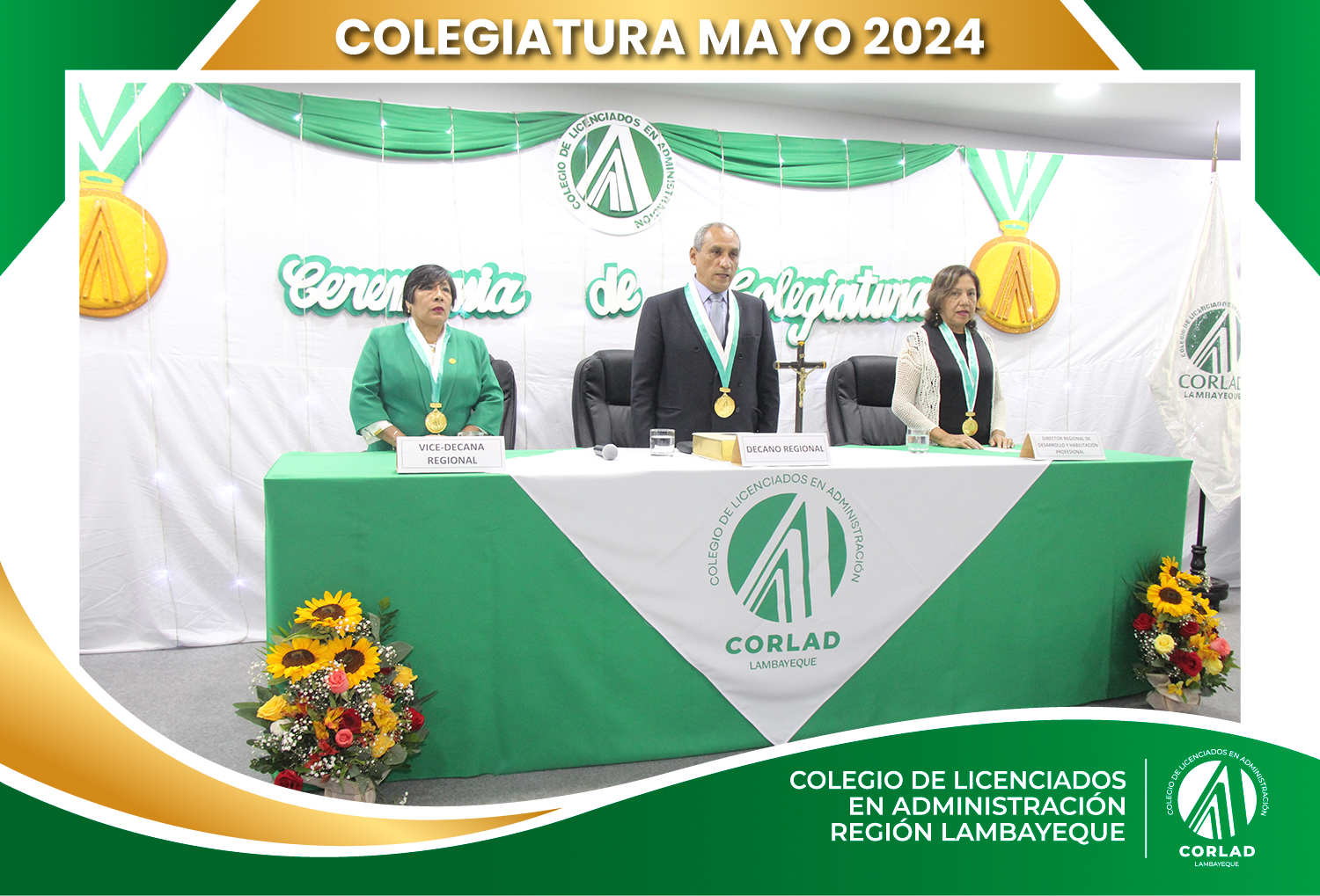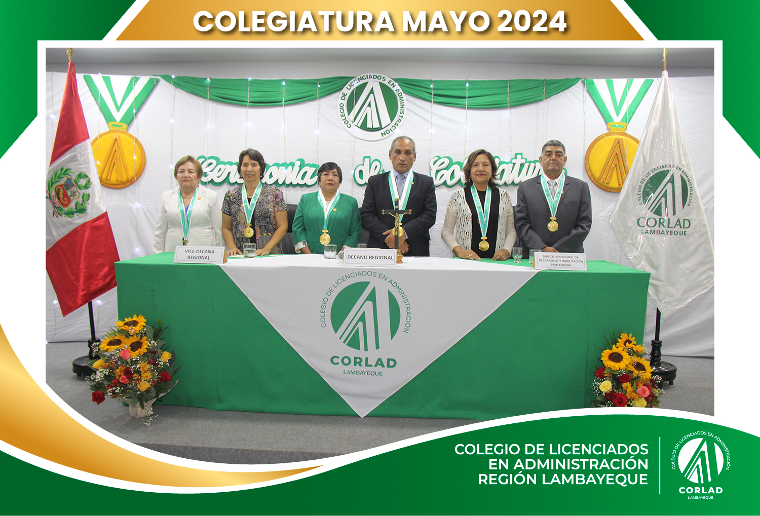 La Ceremonia de Colegiatura Mayo 2024 del Colegio de Licenciados en Administración Región Tacna tuvo lugar el pasado sábado 4 de mayo de 2024 en el Colegio de Contadores, ubicado en la Calle Los Rosales N° 196 – Urb. Santa Victoria.