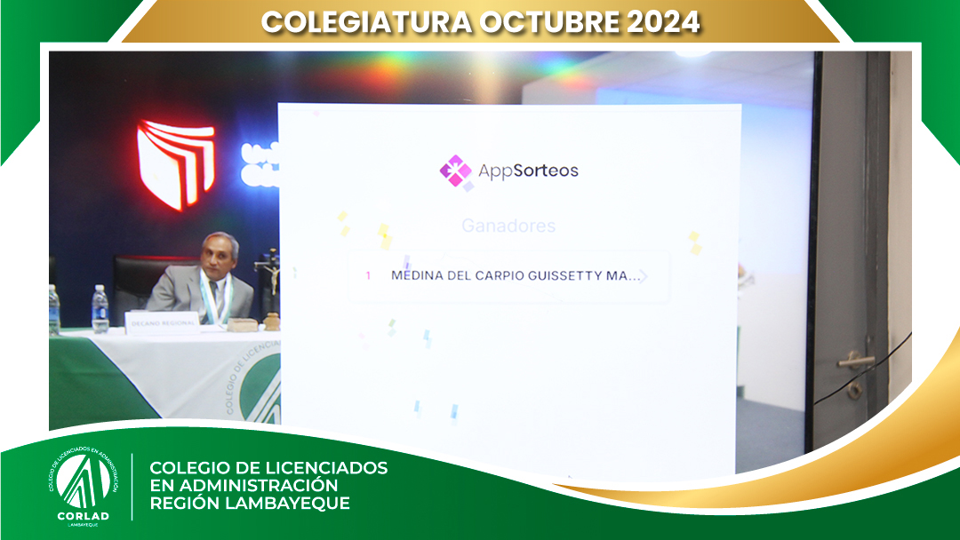 Al concluir la ceremonia, se desarrolló un evento muy esperado por todos los presentes: el sorteo especial «¡Un Colegiado va gratis al XV CONILA Huaraz 2024!». El sorteo fue exclusivo para los colegiados habilitados que se encontraban al día en sus cuotas, y resultó ganadora la Lic. Pretell Tello Melissa Yaneth. Además, se anunciaron dos accesitarios: Medina del Carpio Guisetty Maribel y Mejía Díaz Yosip Ibrahin, quienes recibirán el premio en caso de que la ganadora no pueda asistir.