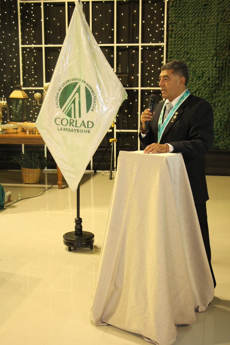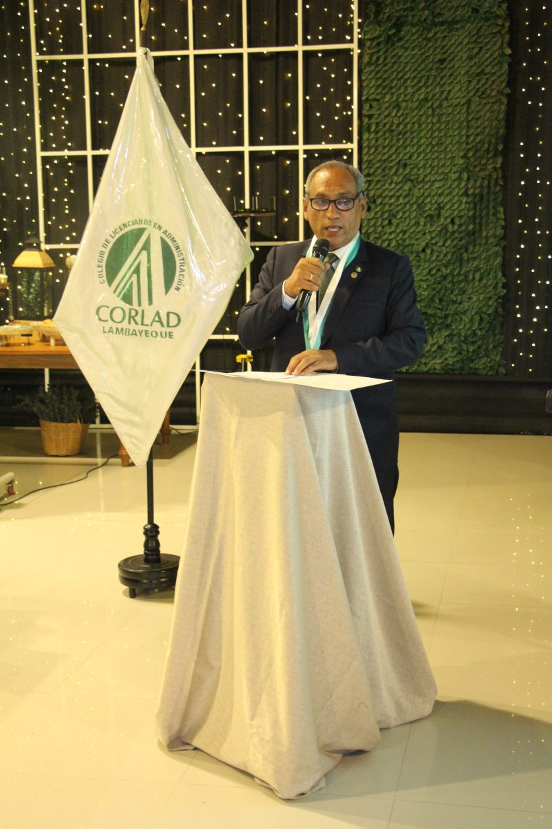 El Mg. Carlos Humberto López Balarezo ofreció unas palabras de bienvenida a todos los presentes, destacando el crecimiento del colegio y su impacto en la formación de administradores en la región.