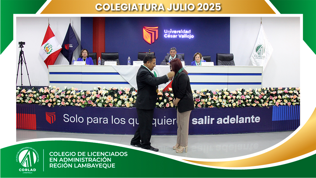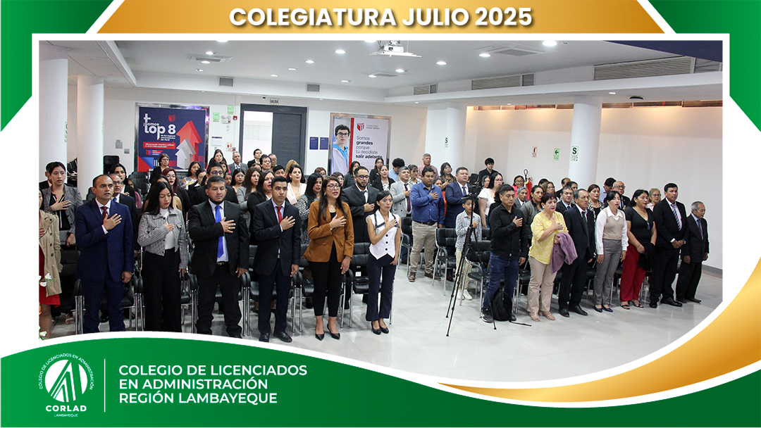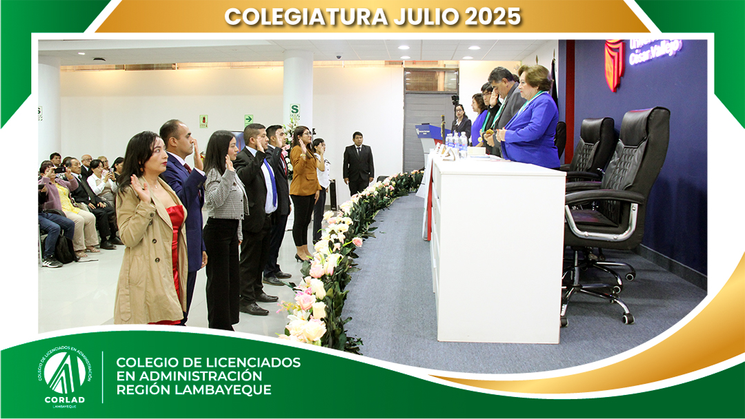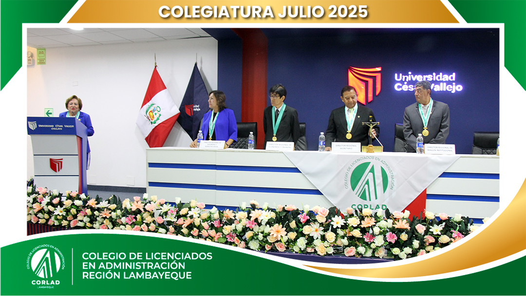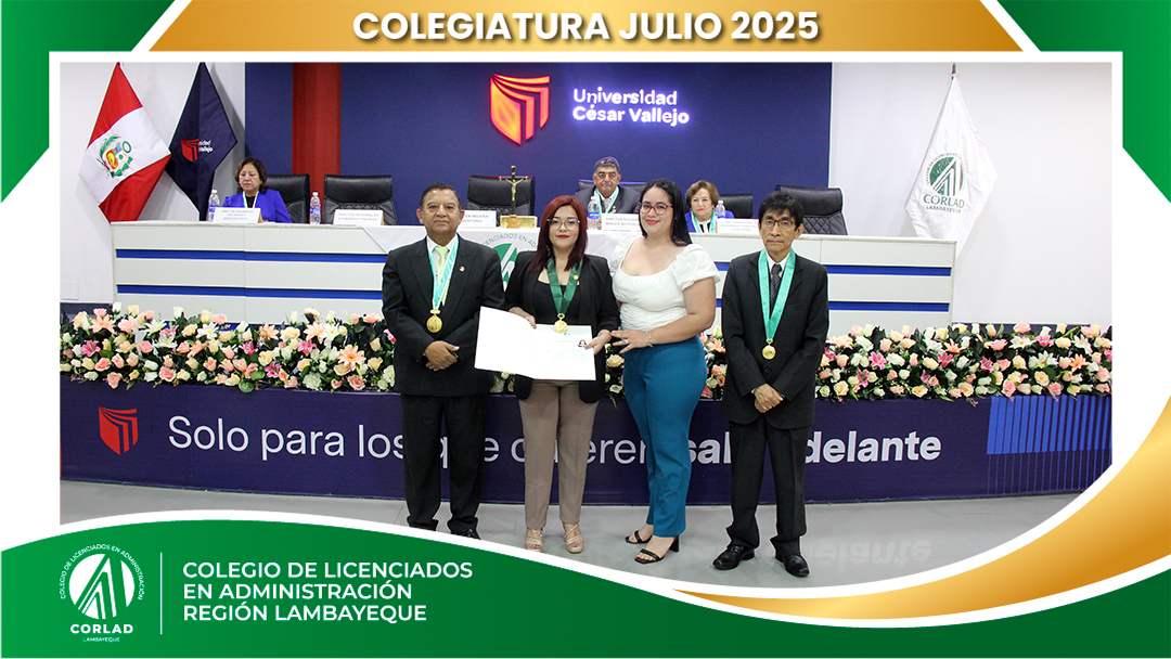El pasado sábado 5 de julio de 2025, se llevó a cabo la ceremonia de colegiatura del Colegio de Licenciados en Administración – Región Tacna, evento desarrollado en el auditorio de la Universidad César Vallejo (Km 3.5 carretera a Pimentel) con la incorporación de 27 nuevos licenciados a nuestra orden profesional.