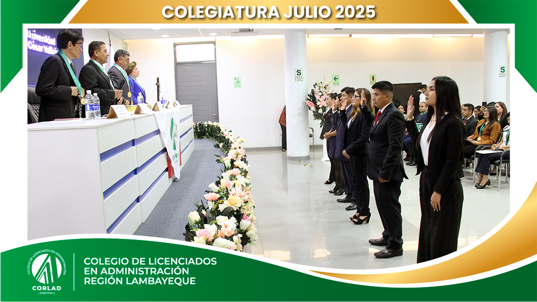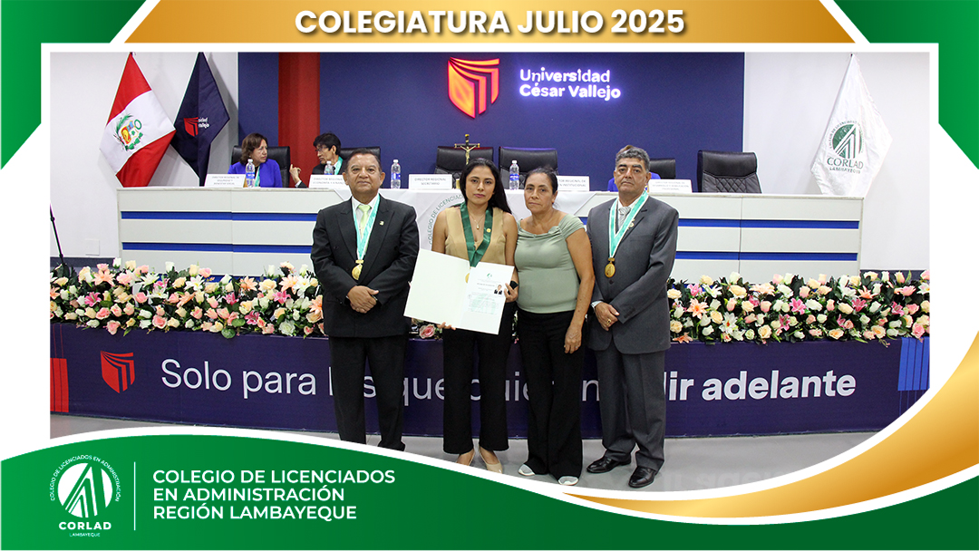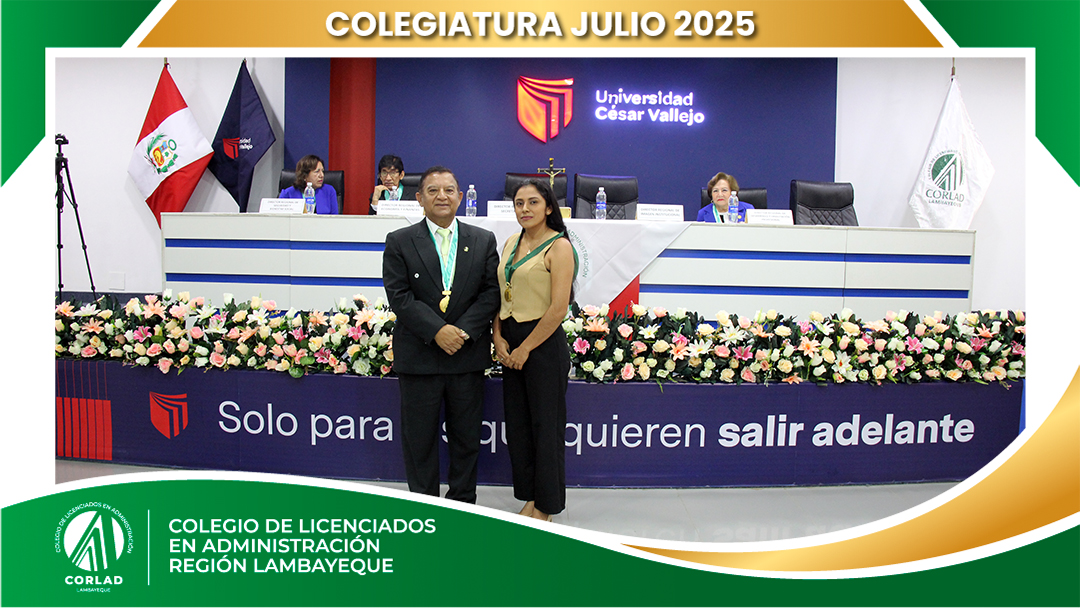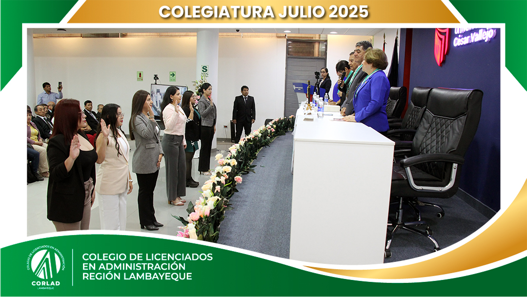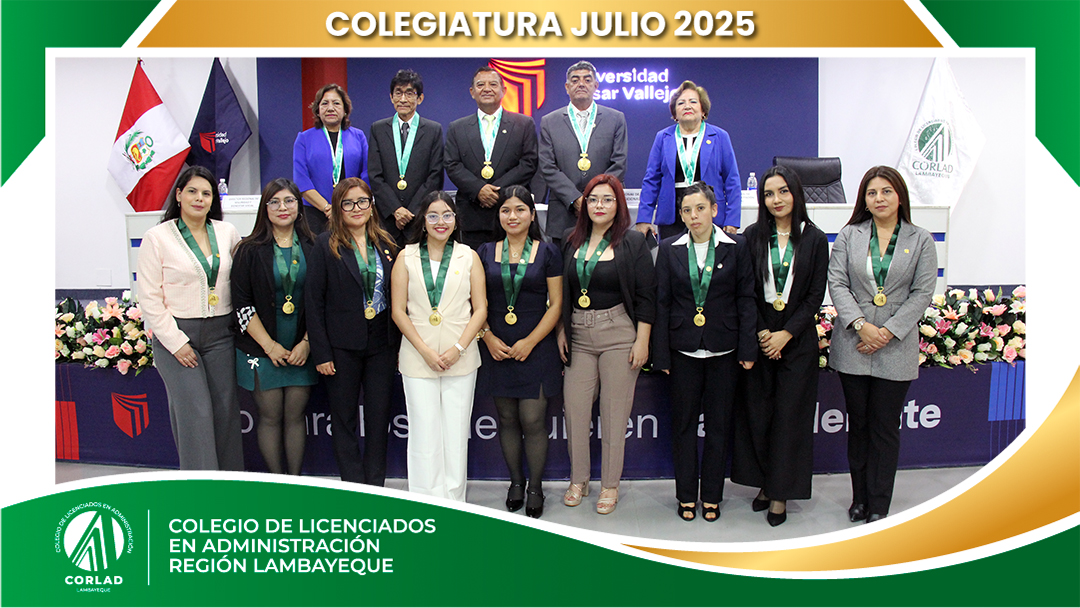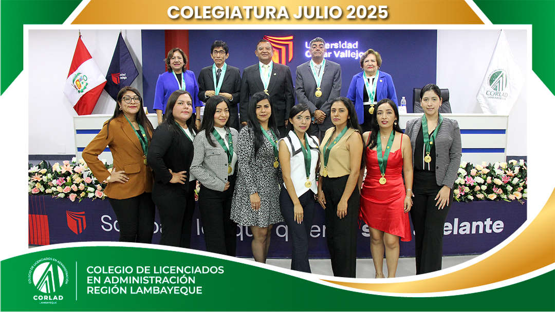 El pasado sábado 5 de julio de 2025, se llevó a cabo la ceremonia de colegiatura del Colegio de Licenciados en Administración – Región Tacna, evento desarrollado en el auditorio de la Universidad César Vallejo (Km 3.5 carretera a Pimentel) con la incorporación de 27 nuevos licenciados a nuestra orden profesional.