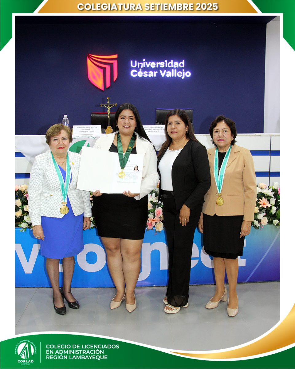 El sábado 6 de setiembre de 2025, desde las 9:00 a. m., se realizó en las instalaciones de la Universidad César Vallejo (UCV) la ceremonia de colegiatura del Colegio de Licenciados en Administración – Región Tacna, acto solemne mediante el cual nuevos profesionales se incorporaron oficialmente a la orden, acompañados de sus familiares y autoridades institucionales.
