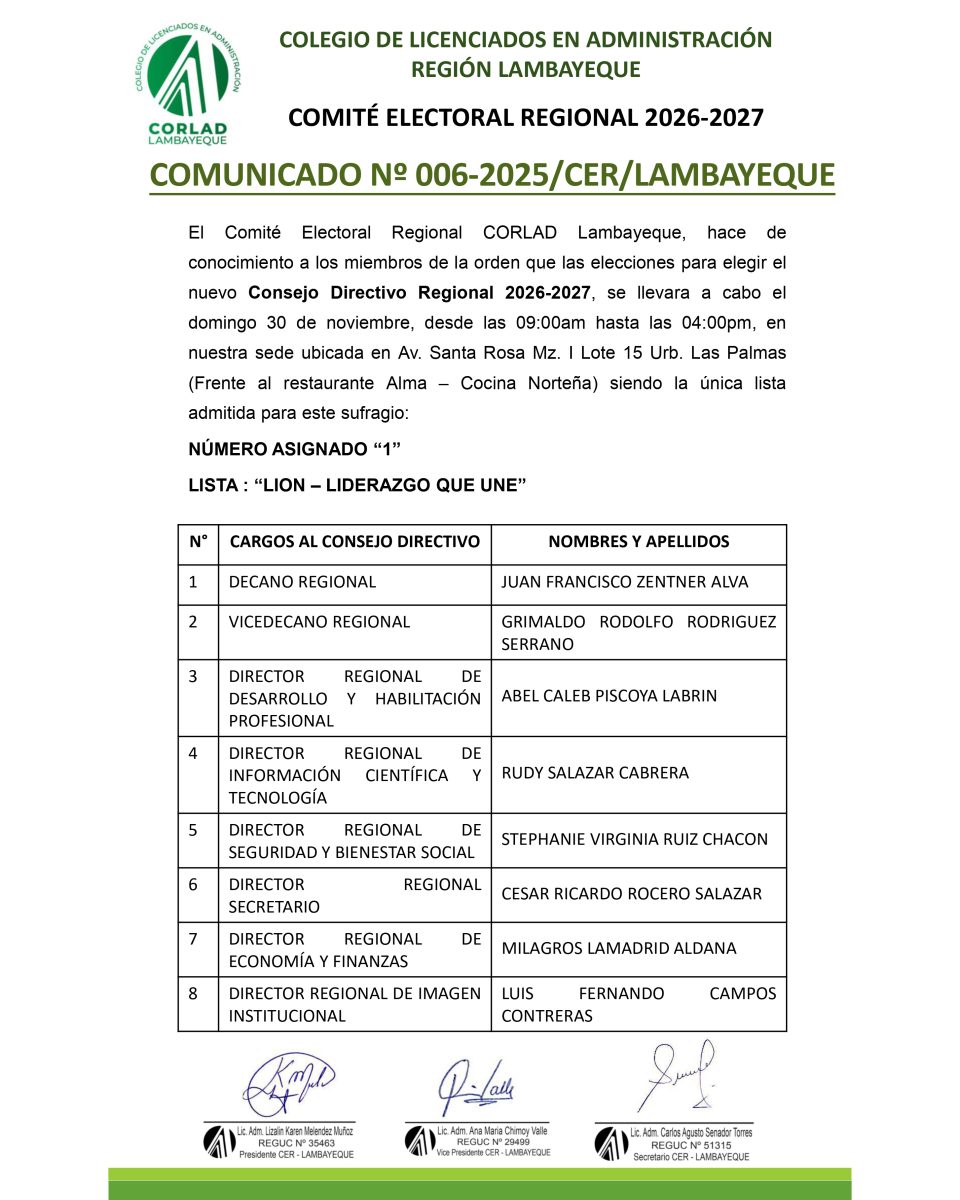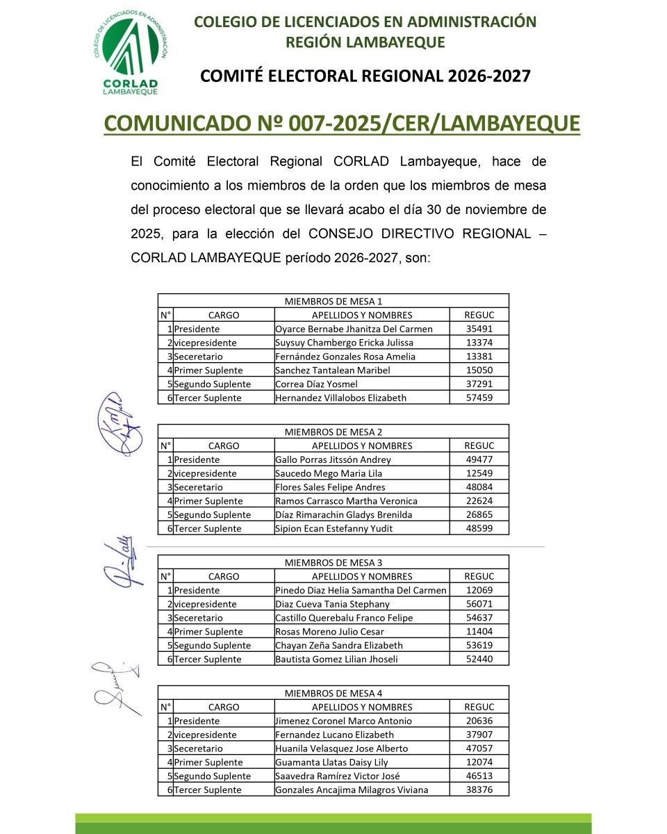 CONSEJO DIRECTIVO CORLAD TACNA
