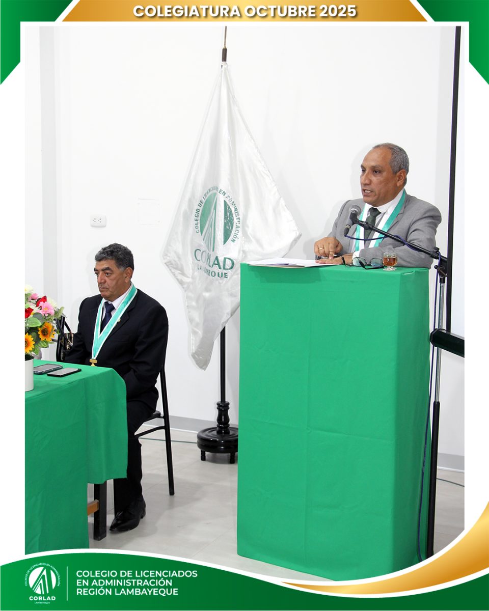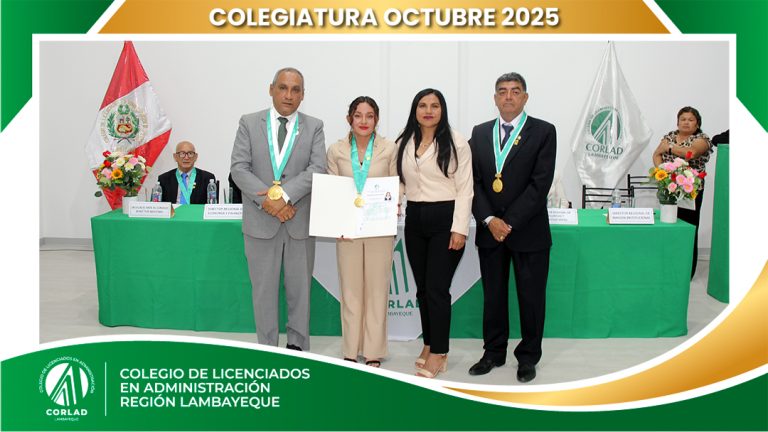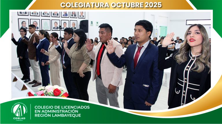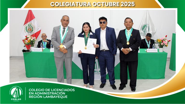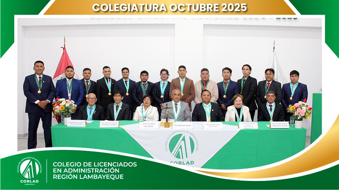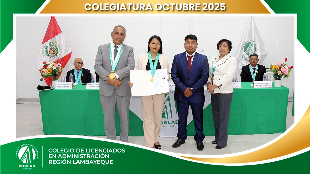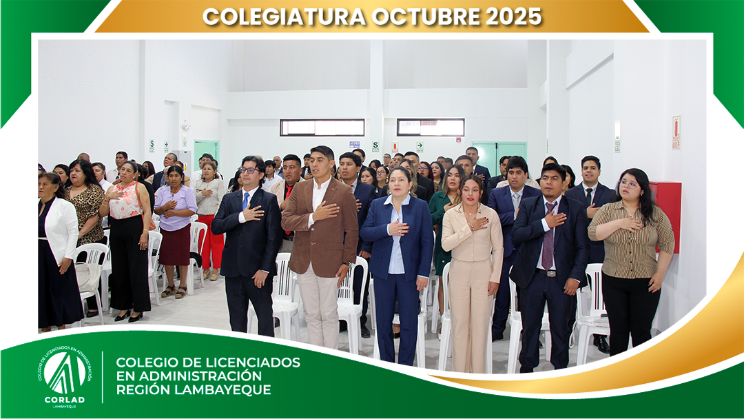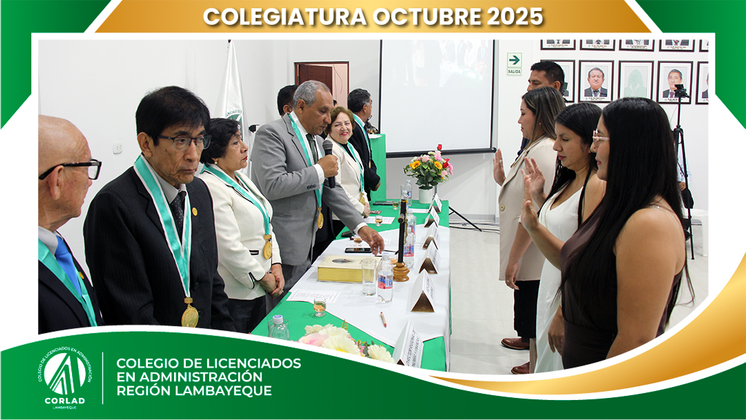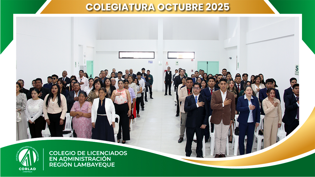 El sábado 4 de octubre de 2025, desde las 9:00 a. m., se realizó en el Local Institucional del Colegio de Licenciados en Administración – Región Tacna, ubicado en la Av. Santa Rosa Mz. I Lt. 15, Urb. Las Palmas, Chiclayo, la ceremonia de colegiatura correspondiente al mes de octubre, en la que nuevos profesionales se incorporaron oficialmente a nuestra orden.
