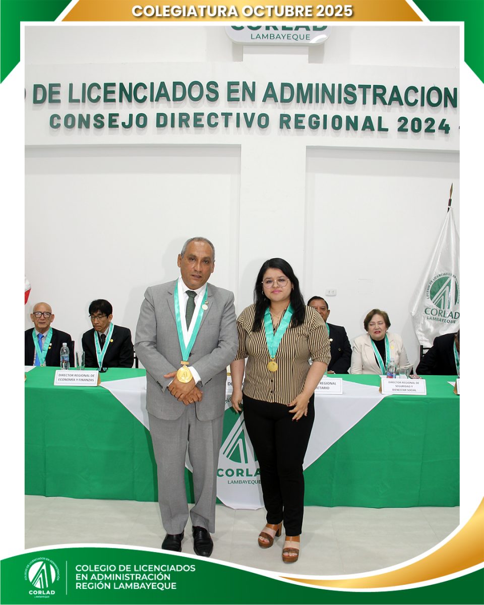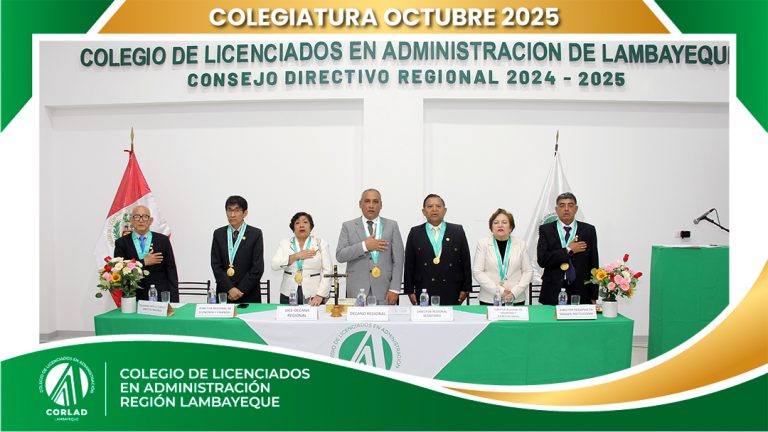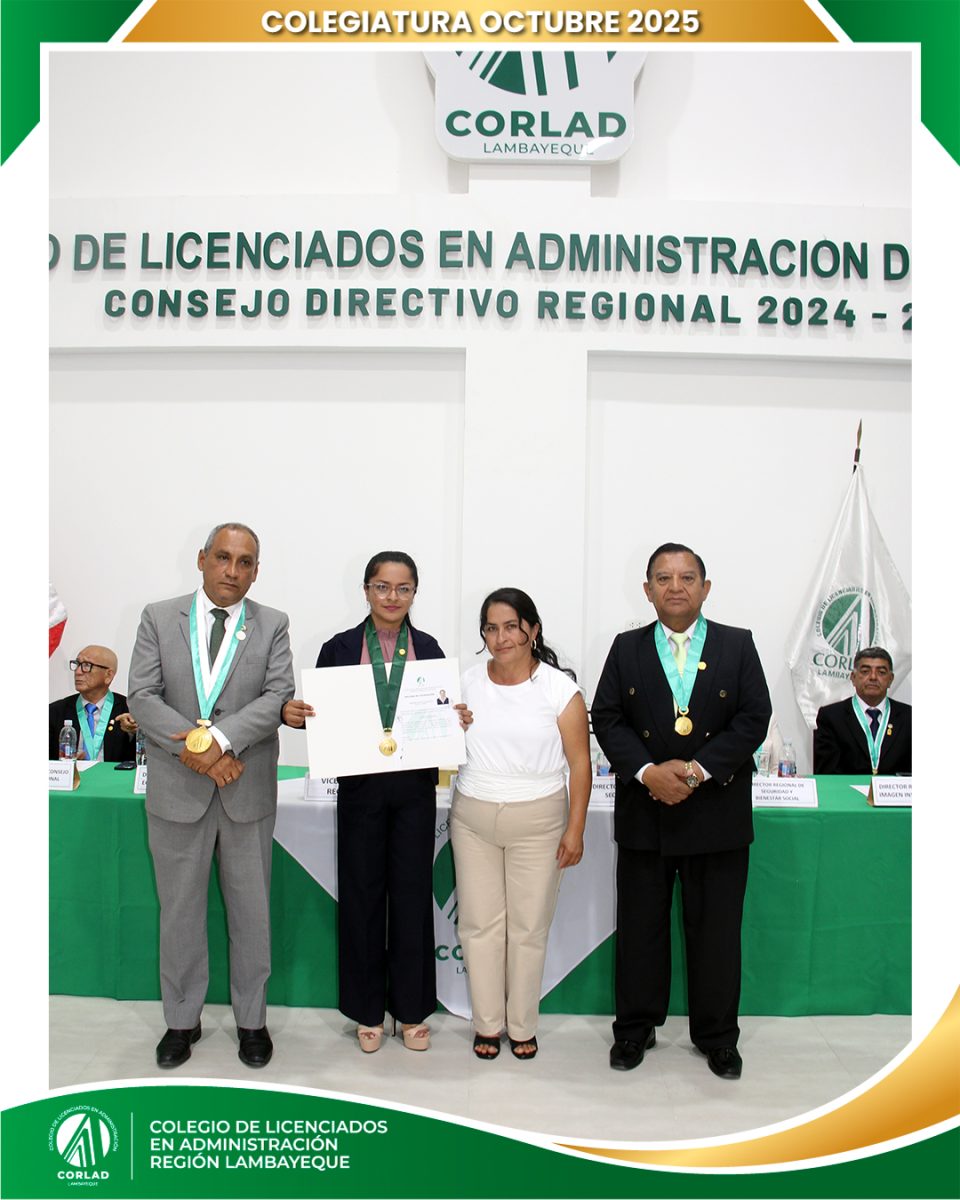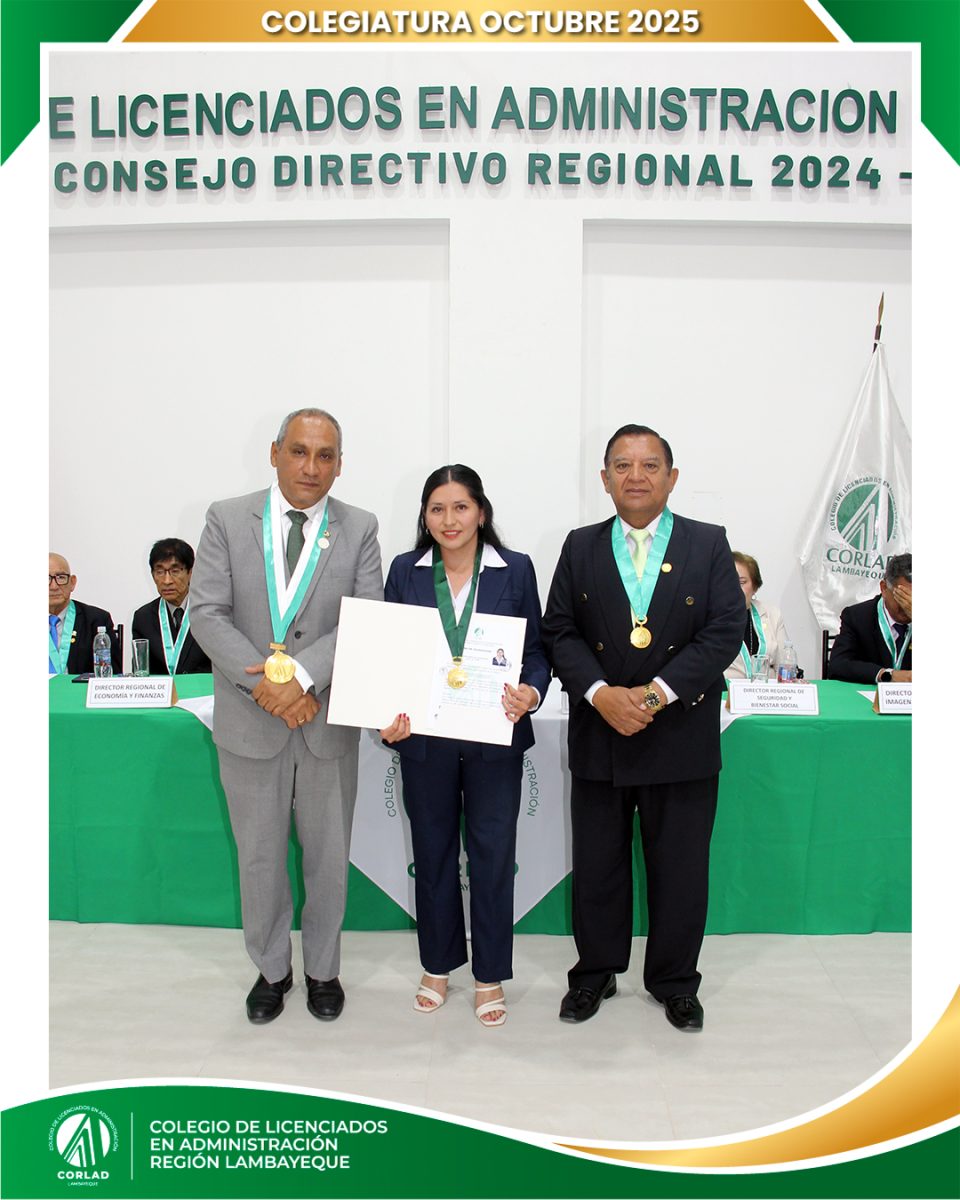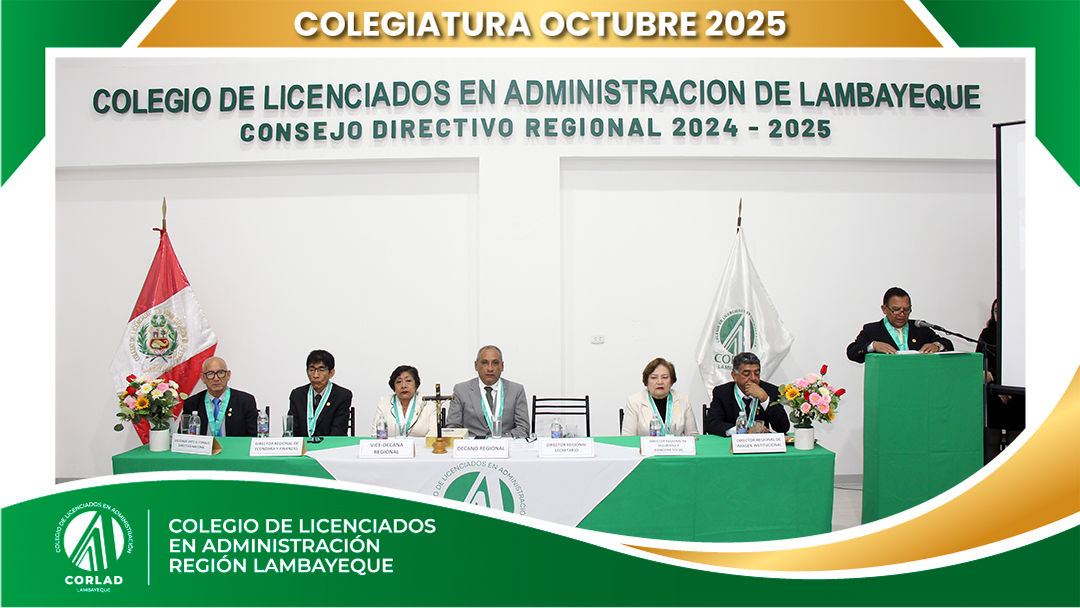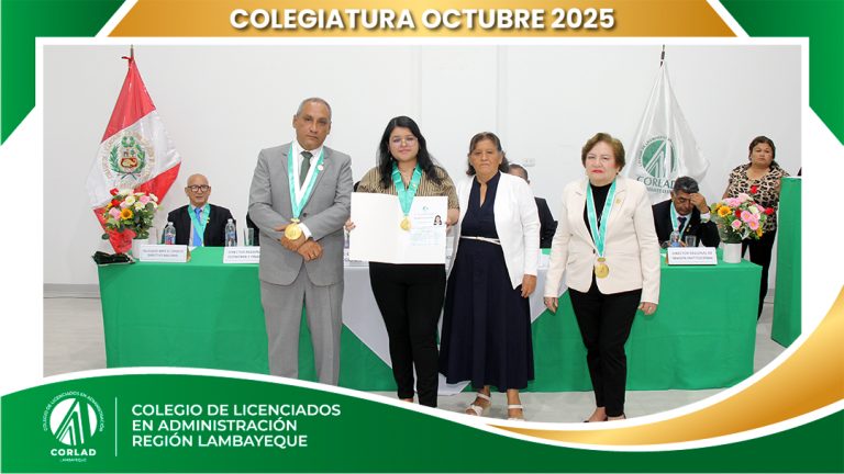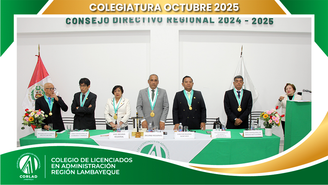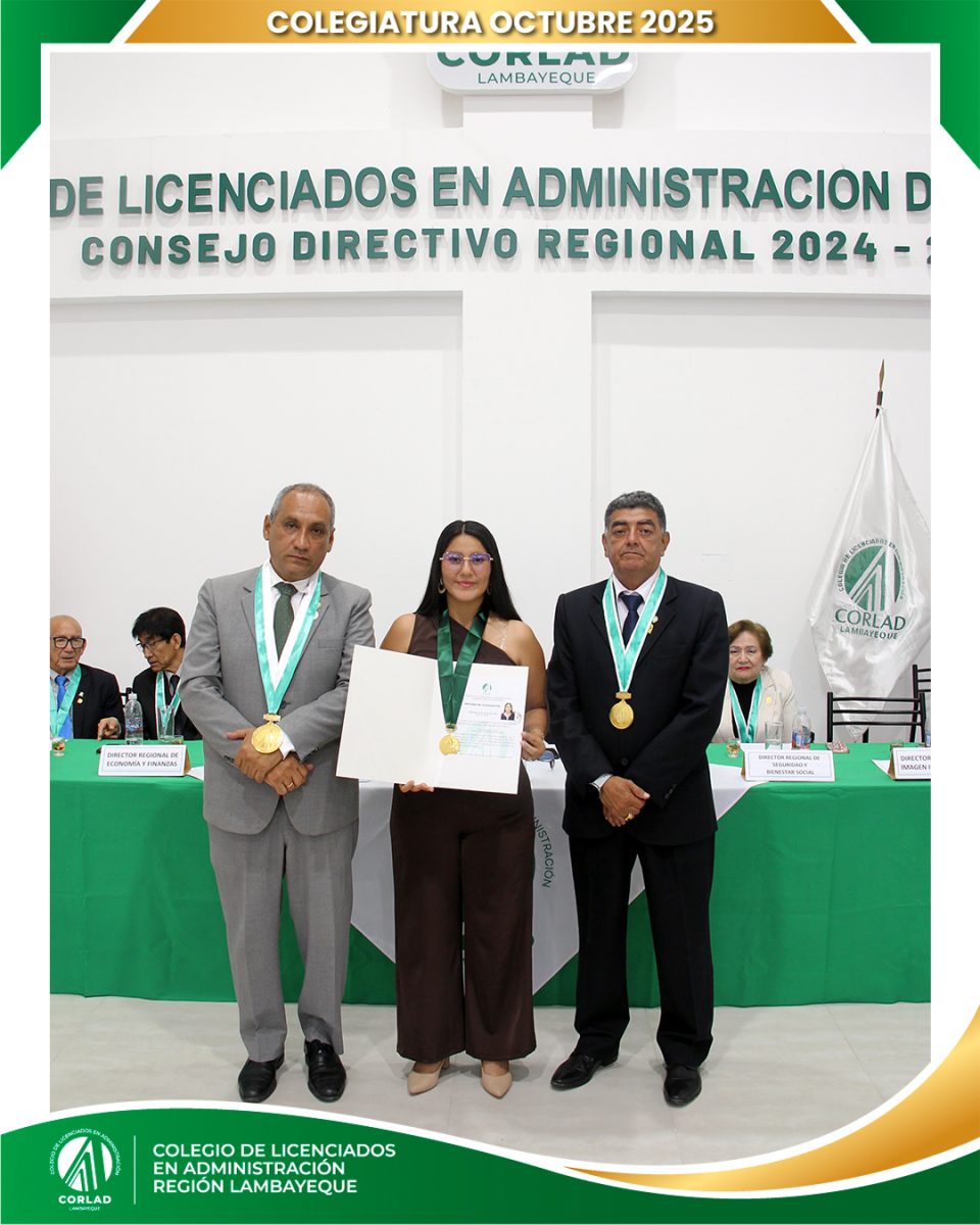 El sábado 4 de octubre de 2025, desde las 9:00 a. m., se realizó en el Local Institucional del Colegio de Licenciados en Administración – Región Tacna, ubicado en la Av. Santa Rosa Mz. I Lt. 15, Urb. Las Palmas, Chiclayo, la ceremonia de colegiatura correspondiente al mes de octubre, en la que nuevos profesionales se incorporaron oficialmente a nuestra orden.