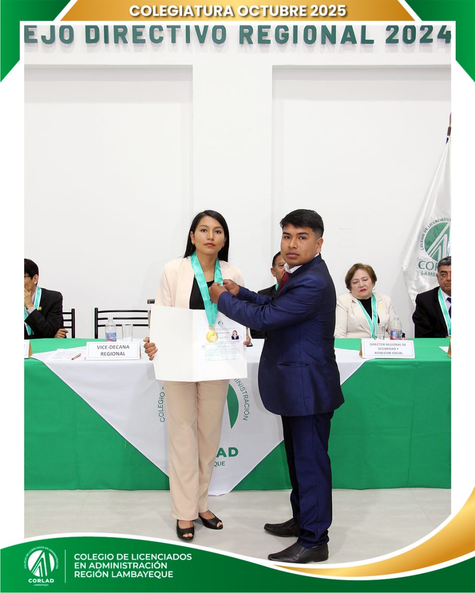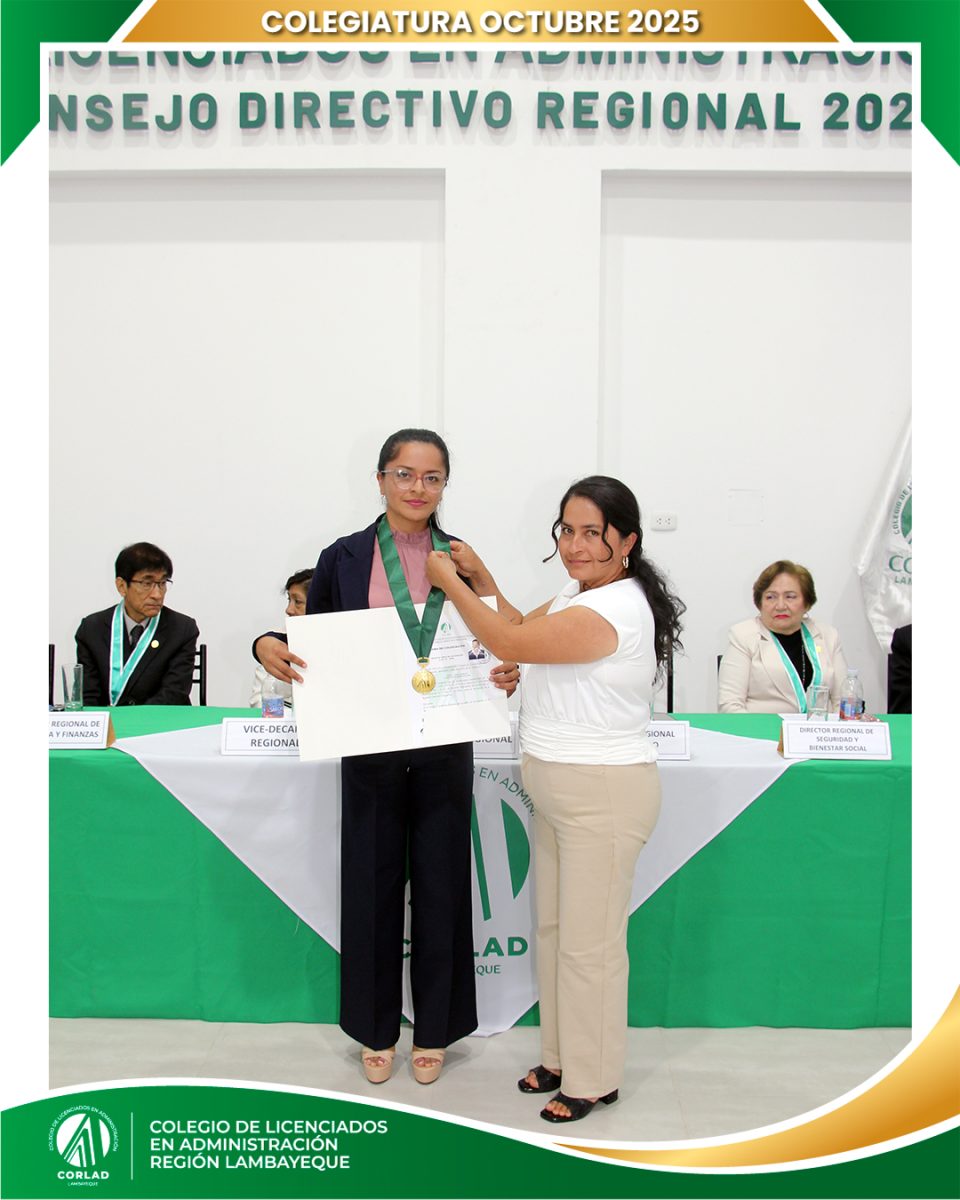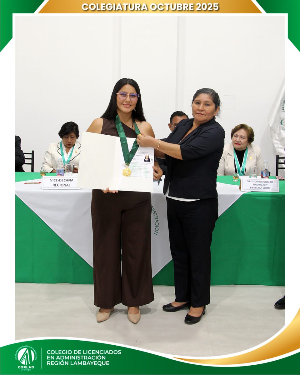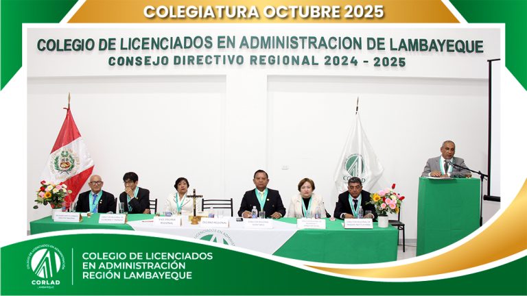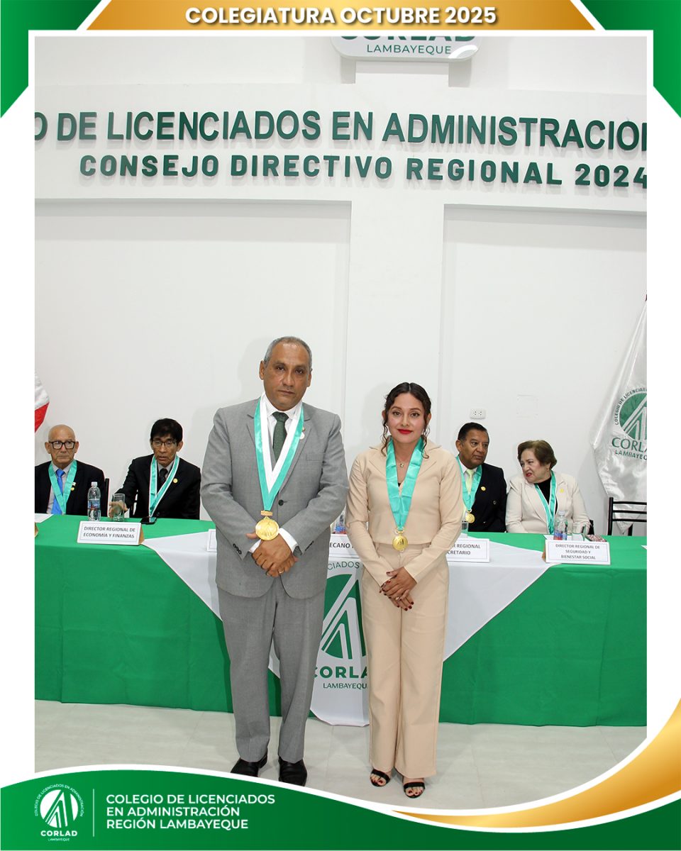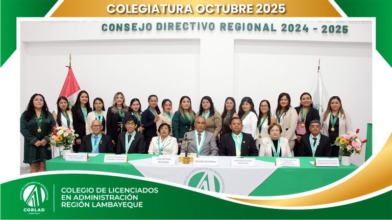 El sábado 4 de octubre de 2025, desde las 9:00 a. m., se realizó en el Local Institucional del Colegio de Licenciados en Administración – Región Tacna, ubicado en la Av. Santa Rosa Mz. I Lt. 15, Urb. Las Palmas, Chiclayo, la ceremonia de colegiatura correspondiente al mes de octubre, en la que nuevos profesionales se incorporaron oficialmente a nuestra orden.