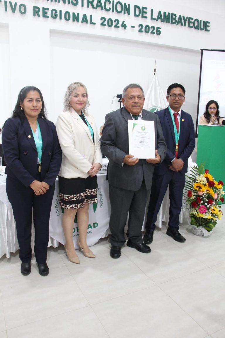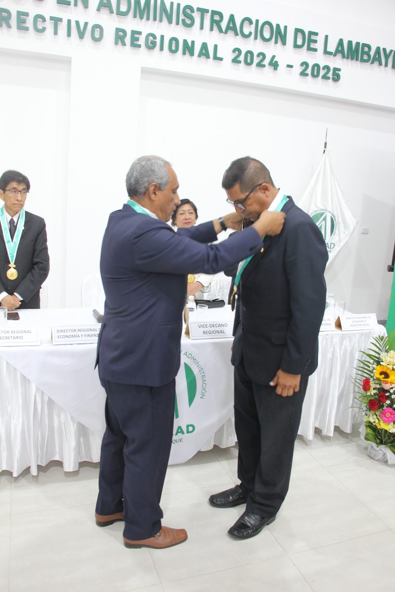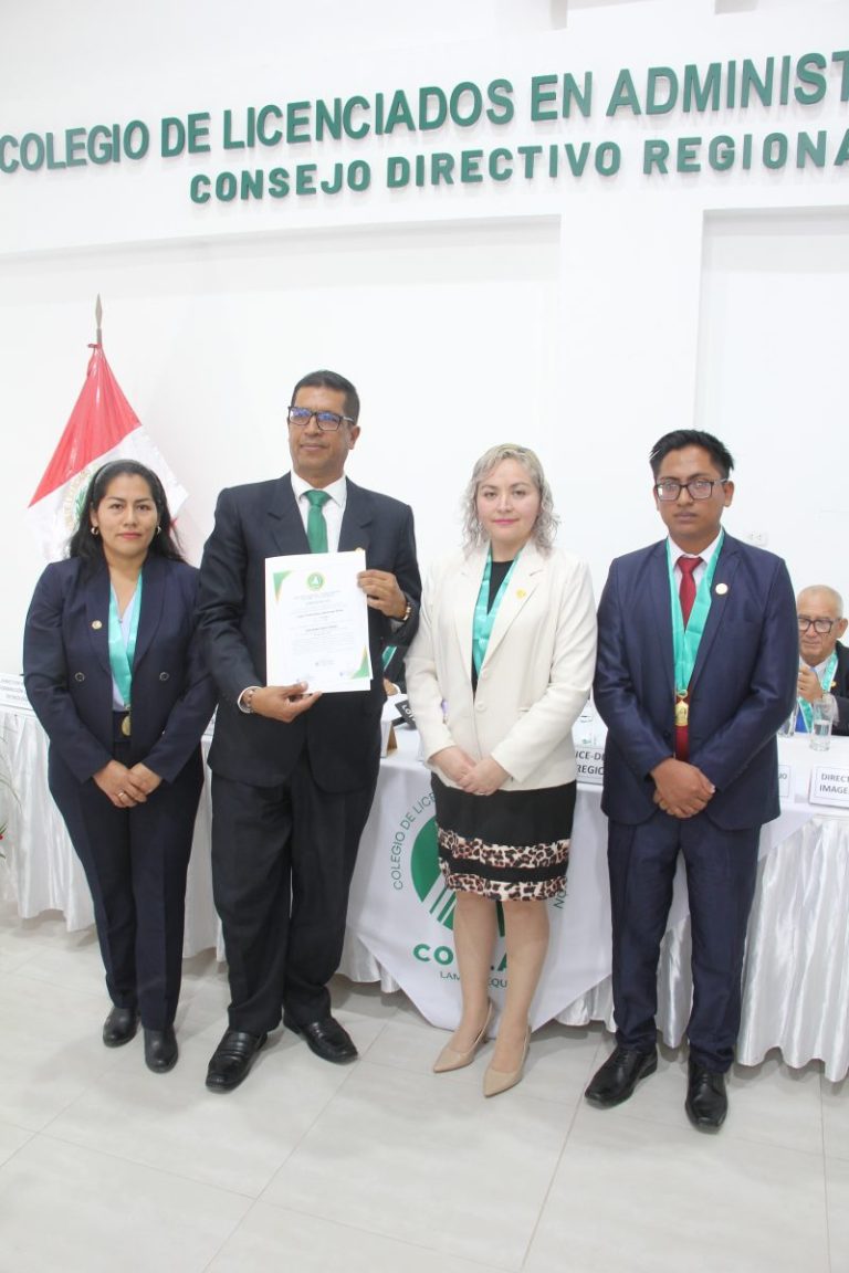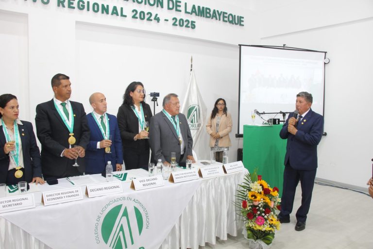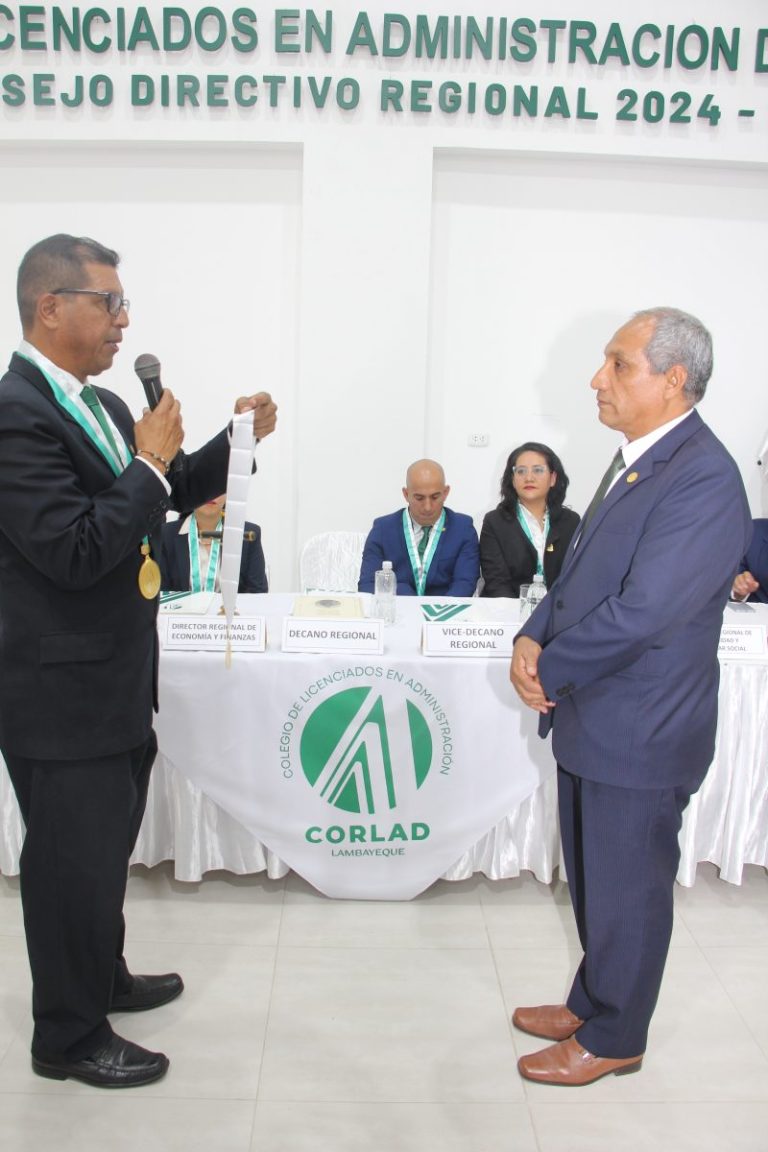 El brindis de honor estuvo a cargo del Dr. Carlos Humberto López Balarezo, Director Regional de Imagen Institucional, quien destacó el valor de la administración como profesión clave para el desarrollo social, empresarial y público, exhortando a los nuevos colegiados a participar activamente en la vida institucional y a ejercer la profesión con ética y responsabilidad.