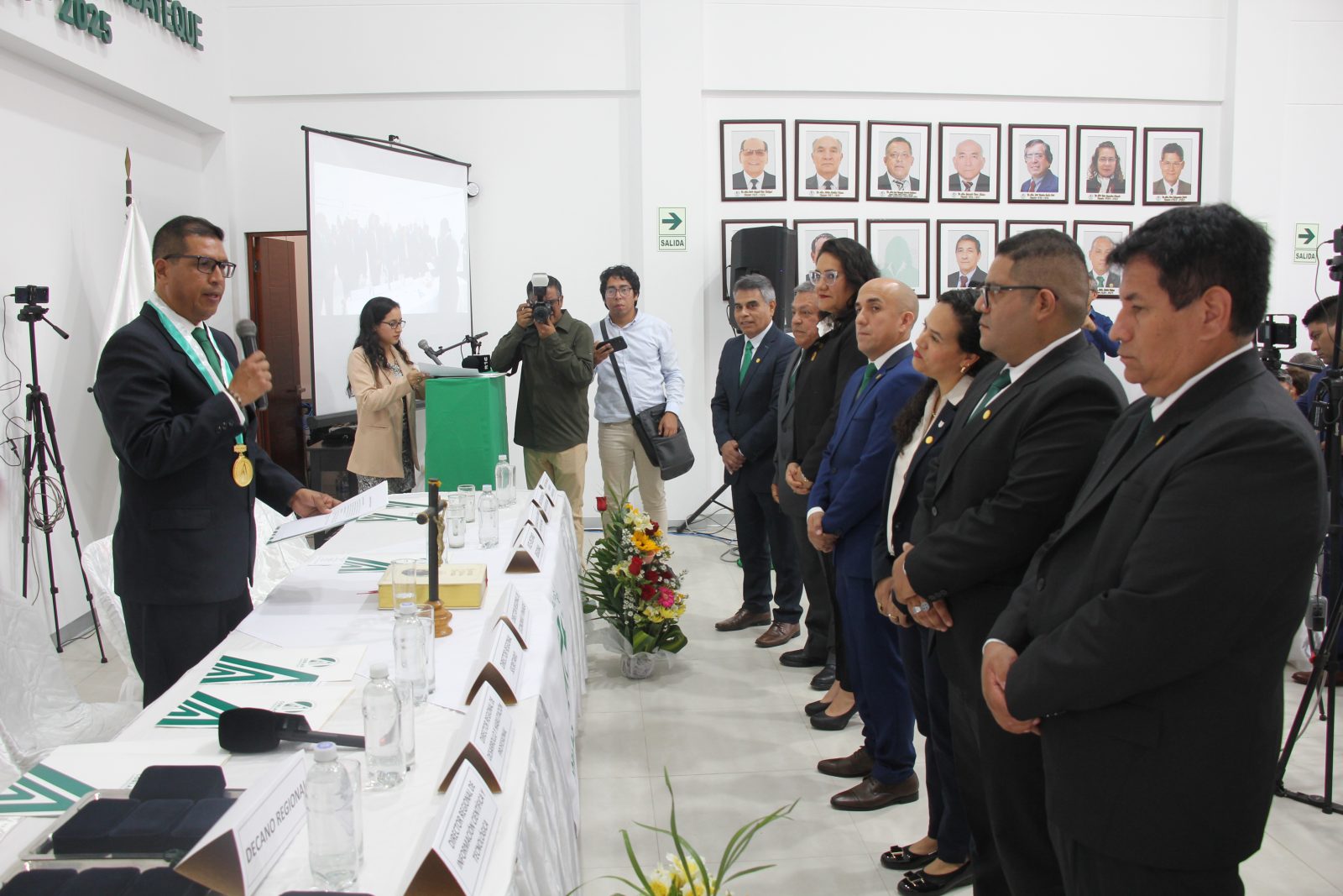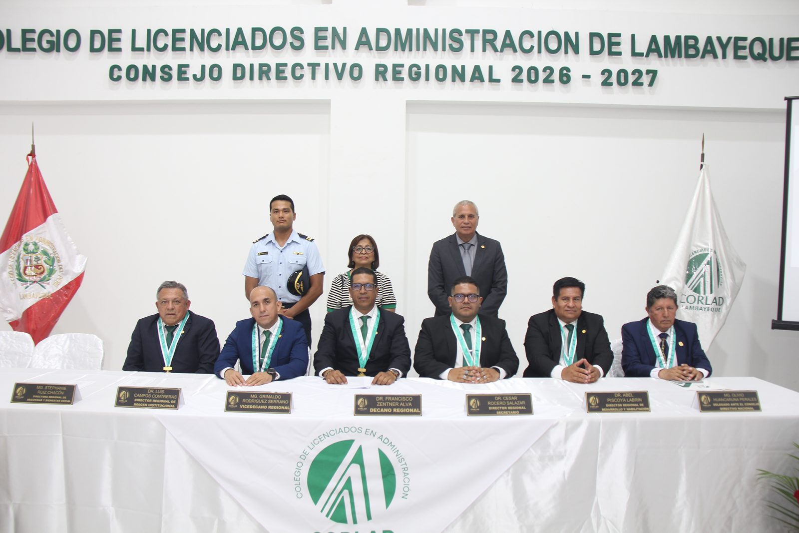 La ceremonia fue presidida por el Dr. Juan Francisco Zentner Alva, Decano Regional, junto al Consejo Directivo Regional 2026 – 2027, quienes reafirmaron su compromiso con el fortalecimiento del gremio y el posicionamiento de la profesión en nuestra región.