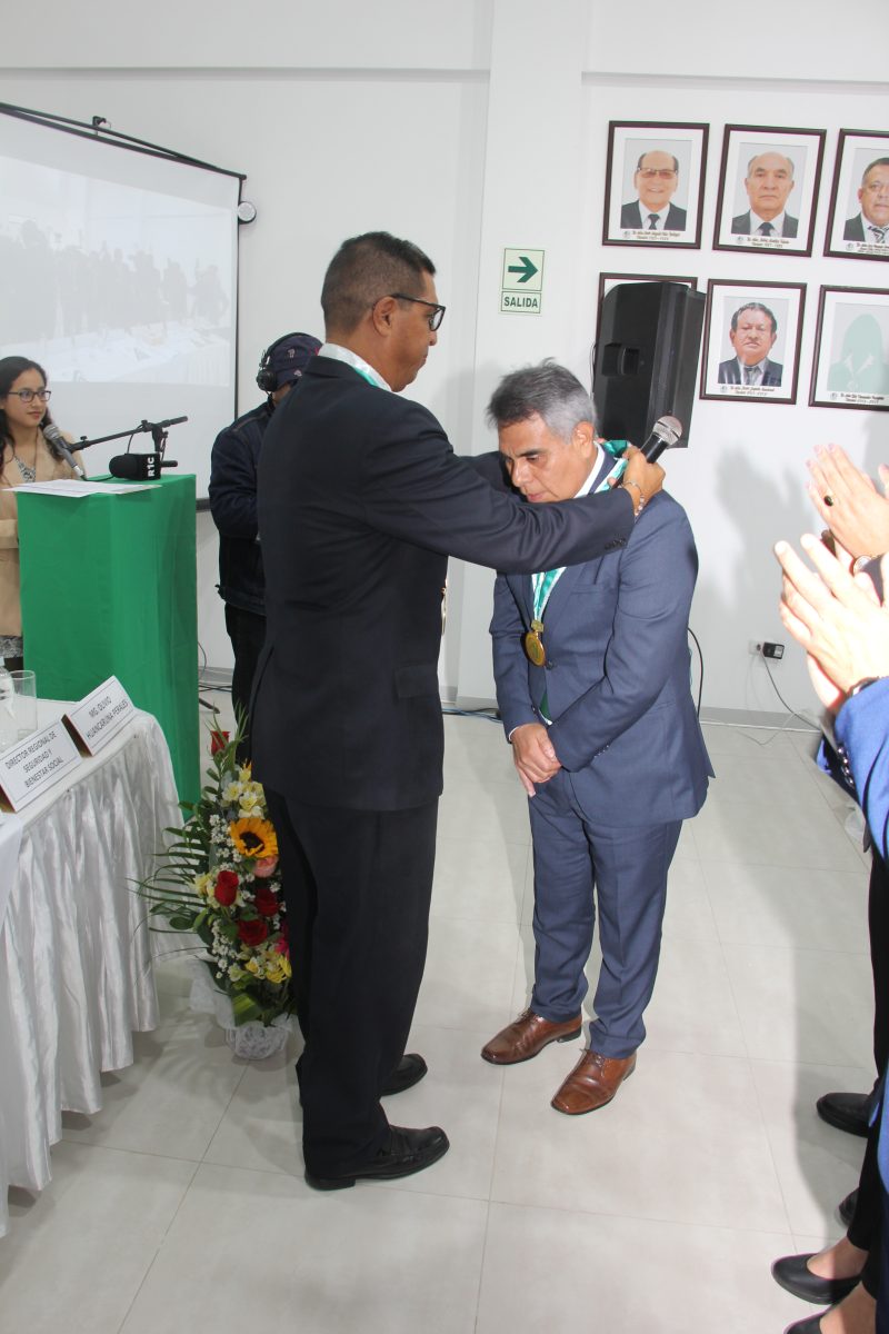 Uno de los momentos centrales fue la juramentación del Decano Regional y del Consejo Directivo en pleno, así como la imposición de medallas, símbolos del honor y la responsabilidad asumida. Asimismo, se realizó un reconocimiento especial al Past Decano Inmediato, Dr. Mirko Merino Núñez, por la labor desarrollada durante su gestión.