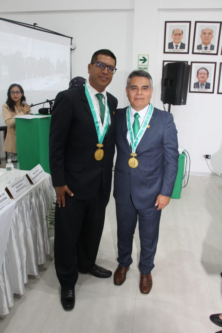 La ceremonia continuó con la imposición de medallas, entrega de diplomas e imposición del pin institucional, actos simbólicos que estuvieron a cargo del Decano Regional y de la Directora Regional de Desarrollo y Habilitación Profesional, contando con la participación de familiares de los nuevos colegiados, quienes acompañaron este importante momento.